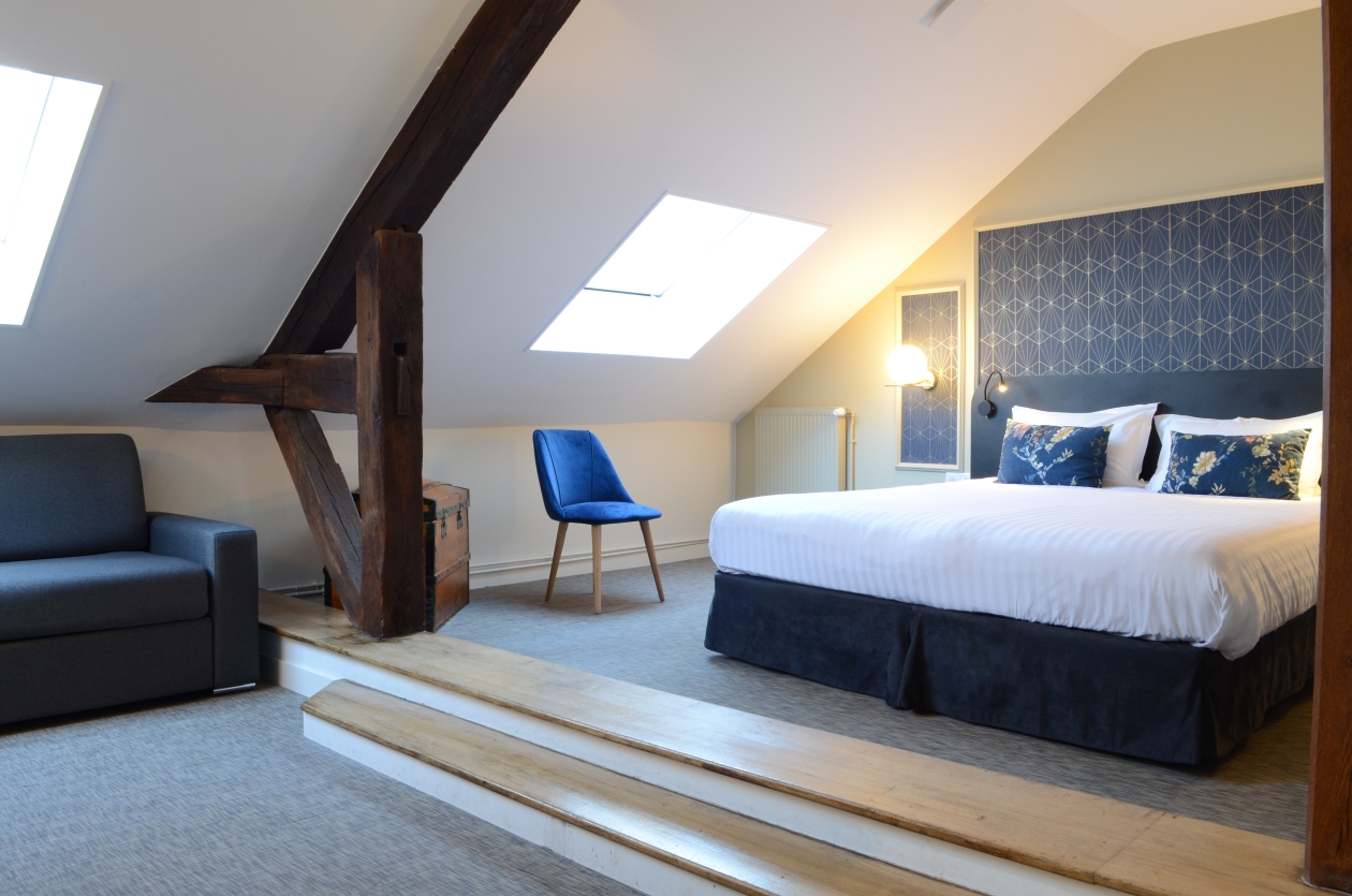 Pouvant accueillir jusqu'à 5 personnes (en supplément), cette chambre familiale sous les toits possède un charme fou !